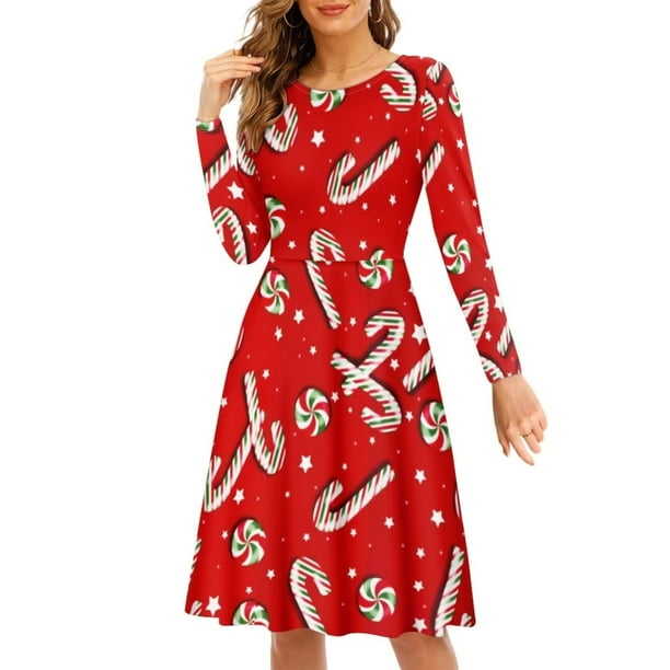 Hugs Ides A Line Dress For Women With Designs Christmas Red Candy Stars Pattern Jumpskirt Elastic Lightweight Thin Going Out All Over Print Woman Clothing3xl Walmart Com